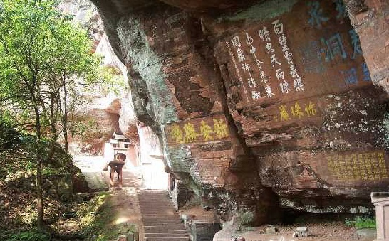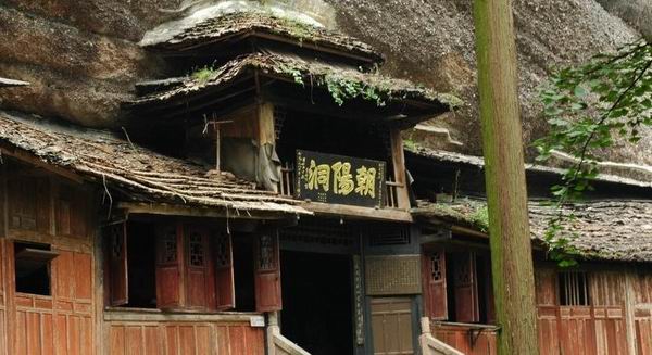 朝阳洞位于主峰老霄顶岩脚,洞口正对东方,深广数丈,可容百人,传为宁封丈人栖息处。清人黄云鸽曾在此结茅而居,并撰联曰:“天遥红日近,地厌绎宫宽”。近代画家徐悲鸿也曾在此撰联:“空洞亲迎光照耀,苍崖时有凤来仪”。