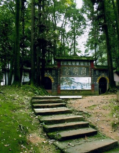 圆明宫坐落在青城丈人山北木鱼山的缓坡谷地。旧名清虚观,为青城山道教宫观之一。圆明宫始建于明代万历年间(1573-1620),后屡有修葺。因供奉圆明道母天尊而得名。宫内有四重殿堂:前为灵祖殿,供奉灵官神像;二殿为老君殿,供奉太上老君;三殿为斗姆殿,斗姆即圆明道母天尊,为北斗众星之母;后殿为三官殿,供奉天、地、水三官大帝,及全真道的吕祖、邱祖和重阳祖师。殿堂之间,各有庭院,宫内宫外,瑞草奇花,楠木成林,松竹繁茂,有即景联云:“栽竹栽松,竹隐凤凰松隐鹤;培山培水,山藏虎豹水藏龙。”环境十分出静宜人。