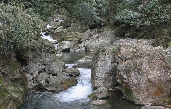 天师洞附近景色幽丽,东有三岛石,巨石矗立,上有两条裂隙,故名。民间传说,张天师降魔时,见此石挡路,遂拔剑劈之,裂成三块,石上刻有“降魔”两字。石旁泉水环流,浓荫蔽天。沿着石隙所凿石阶,拾级而下,可下至海棠溪边,涧深壁陡,藤萝垂挂,无比幽静。天师洞西侧有掷笔槽,这是个六十多米深的幽谷,民间传说是张天师降魔时,作符掷笔而成的,景色奇幽。