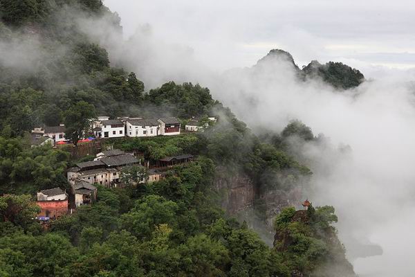 位于江西省鹰潭市东南20公里处贵溪市境内。龙虎山之得名有二说:一是据《龙虎山志》:“山本名云锦山,第一代天师于此炼九天神丹,丹成而龙虎见,因以山名;另一是据《广信府志·山川篇》,谓其为象山山脉之一支,历台山西行数十里,折而南,分两支,环抱状若龙盘虎踞,故得此山名。”。据道教典籍记载,张陵第四代孙张盛在三国或西晋时已赴龙虎山定居,此后张天师后裔世居龙虎山,至今承袭六十三代,历经一千九百多年。2010年8月2日,龙虎山与龟峰被一并列入《世界自然遗产名录》。