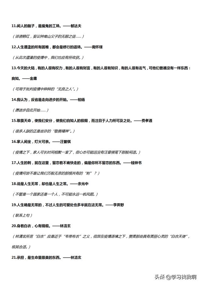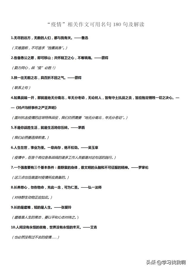 所以今天就和大家分享一下“疫情”相关的作文可用名句180句及解读,有备无患,希望各位同学和家长及时保存好!书到用时方恨少,日积月累最重要!