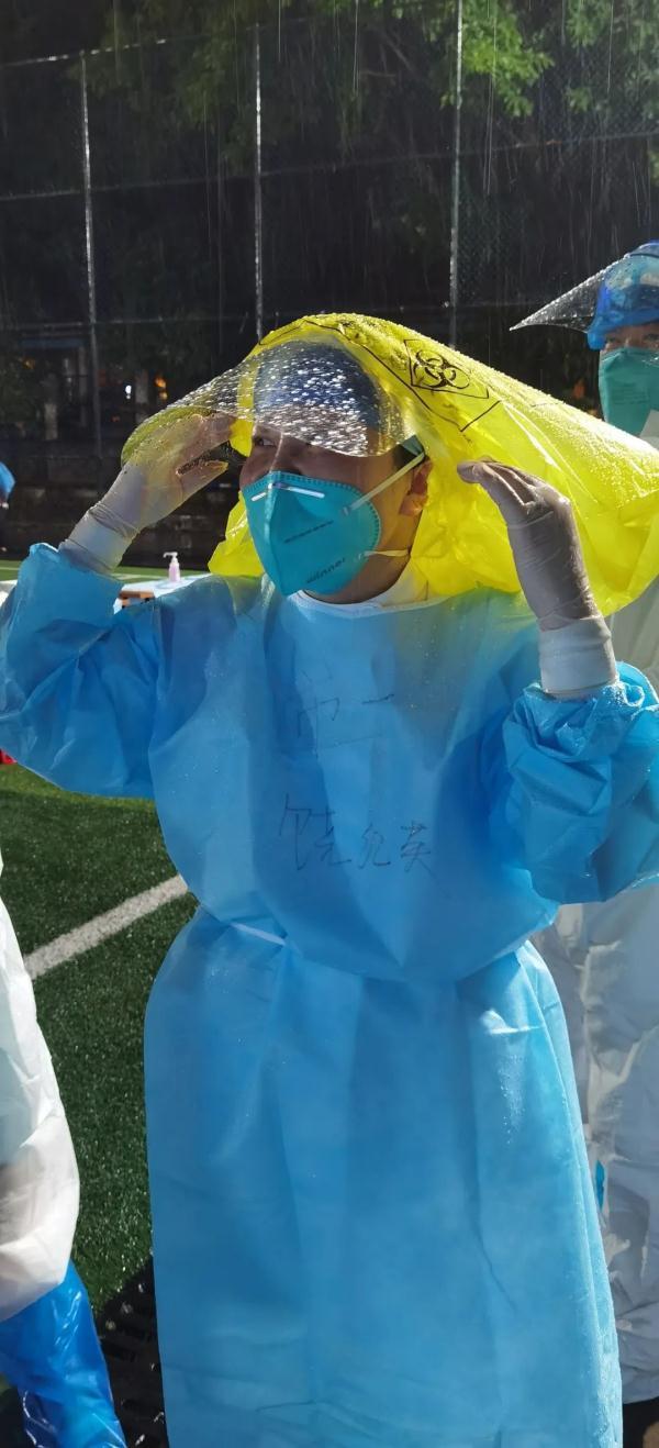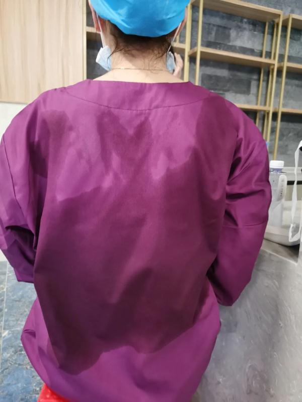 5月25日凌晨3点,广州市第一人民医院饶红英护士。防护服里面是汗水,外面是雨水