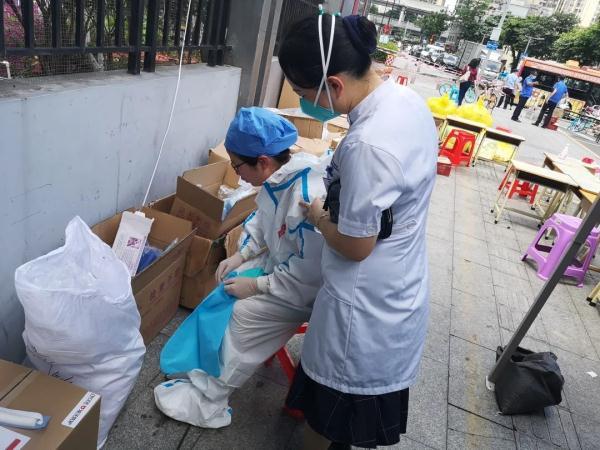 自5月21日起,广州医科大学附属第三医院组建了由百名医护组成的核酸检测分队,已先后在荔湾区龙津路、和业广场、芳村、昌华街道等十余个社区核酸检测点服务。