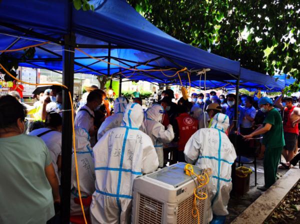 5月26日当晚,广州中医药大学第三附属医院共派50多名医务人员分别赶往广州黄沙、岭南街开展核酸检测。晚上10点加派10名医务人员赶赴真光中学、东沙博雅中学等区域开展核酸检测。目前新一批次共近40名医护人员接过接力棒。
