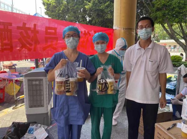 市十二医院医护收到市民送来的“暖心茶”广中医三院:新一批40人在现场