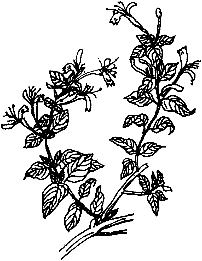 金银花是忍冬科忍冬属多年生常绿或半常绿藤本植物。株高5米,枝中空,幼枝嫩绿色,老枝棕褐色。叶对生,阔柳叶形。夏秋间开花,伞房花序,花冠长管状,初开时洁白如玉,后逐渐变为金黄色,有香气,由于花期不同,全株呈现黄白两色花。它的果实为圆球形浆果,黑色。花期4~6月,果期8~10月。《本草纲目》记载:“忍冬在处有之。附树延蔓,茎微紫色,对节生叶,叶似薜荔而青,有涩毛。三四月开花,长寸许,一蒂两花二瓣,一大一小,如半边状,长蕊。花初开者,蕊瓣俱色白,经二三日,则色变黄。新旧相参,黄白相映,故呼金银花,气甚芬芳。”