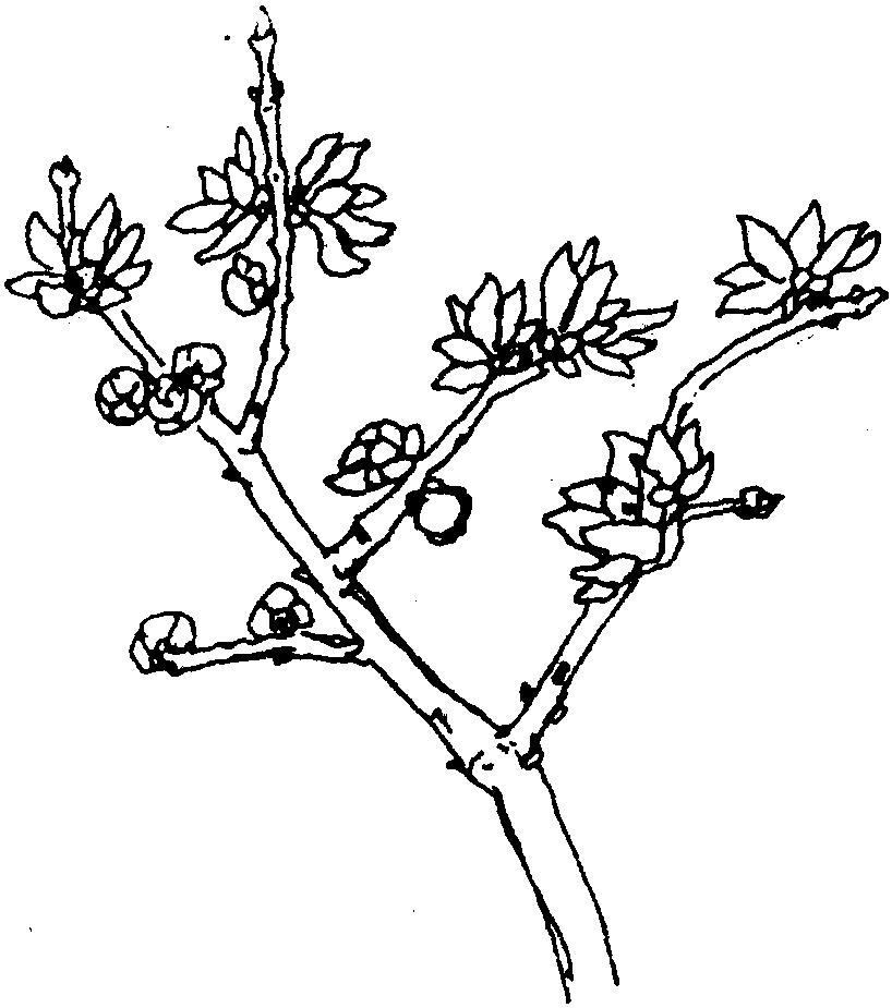 蜡梅为蜡梅科蜡梅属落叶灌木,株高2~4米,丛生,小枝四棱形,老枝近圆柱形。叶对生,长圆形,冬季开花,花单生于枝条两侧,先花后叶,花瓣外层黄色,内层暗紫色,瓣似捻蜡所成,晶亮闪光,芳香浓郁。蜡梅能傲冬御寒,雪中含苞怒放,是我国北方露地花木春季开花最早的一种。从腊月开花,可延续到第二年二月。栽培管理好,可四季开花。