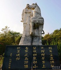 翠微亭下岳飞塑像和《池州翠微亭》诗刻石
