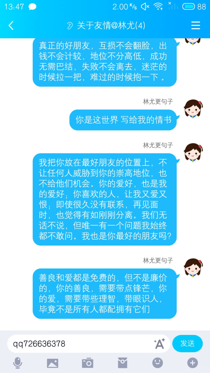 关于友情的说说句子,句句暖人心一知音,能有一两个已经很好了,实在不必太多朋友之乐,贵在那份踏实的信赖二如果有一天你想哭,给我打电话,我无法许诺让你笑,但是我可。5 友情不是一堆华丽的辞藻,而是一句热心的问候友情不是一个敷衍的拥抱,而是一个会心的眼神 6 友谊是最圣洁的灵物,她既会在同性中生根发芽,也会在异性中开花结果 7 感激生命。