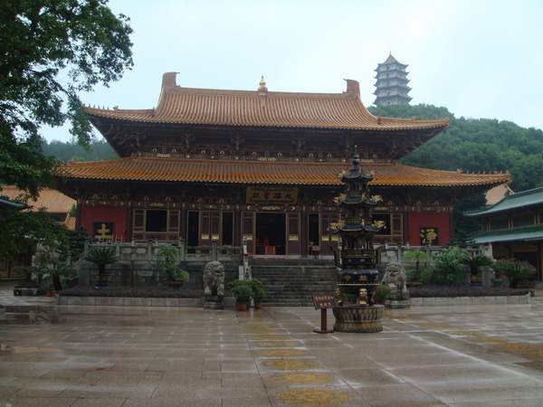 东林寺建成于东晋太元九年(384),由慧远创建。迄今已有1600多年历史,沧桑历尽,屡废屡兴。慧远(334~416)先在西林寺以东结“龙泉精舍”,后得江州刺史桓伊之助,筹建东林寺。慧远在东林寺主持30余年,集聚沙门上千人,罗致中外学问僧123人结白莲社,译佛经、著教义、同修净土之业,成为佛门净土宗的始祖。东林寺在唐时达到极盛,有殿、厢、塔、室共三百一十余间,藏经一万多卷,为当时全国寺院之首。扬州高借鉴真东渡日本之前,曾来过东林寺,后偕东林寺僧智恩同渡日本,慧远和东林净土宗的教义也随之传人日本,至今日本东林教仍以庐山东林寺慧远为始祖。