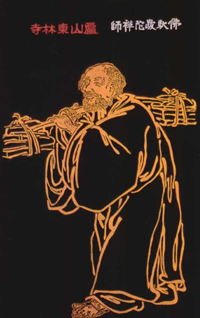 贯休(832~912),俗姓姜,字德隐,婺州兰溪(今属浙江)人,唐末五代前蜀著名画僧、诗僧。工画,所作水墨罗汉及释迦弟子诸像,笔法坚劲,形象夸张,所谓“梵相”。兼善草书。七岁时投兰溪和安寺圆贞禅师出家为童侍。贯休博闻强识,日诵《法华经》千字,过目不忘。贯休雅好吟诗,常与僧处默隔篱论诗,或吟寻偶对,或彼此唱和,见者无不惊异。贯休受戒以后,诗名日隆,远近闻名贯休一生风萍浪迹,天南海北,他的云游路径自江浙至赣鄂,然后入四川。在这个路径中,贯休曾长住庐山东林寺修学。曾有首《题僧院》,通过对东林寺冬日虎溪夜月和松枝戴雪等风物的描摹,表达一种持修之中闲逸、清雅的意境。诗曰:“虎溪闲月引相过,带雪松枝挂薜萝无限青山行欲尽,白云深处老僧多”。
