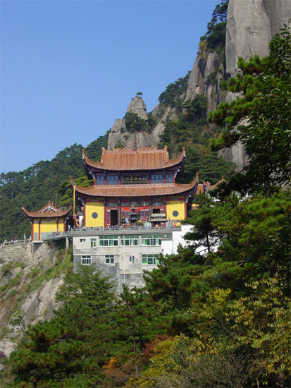 九华山“四大丛林”之一。位于九华山东峰之巅,外表有如民宅,其实是一座拥有99间半殿宇和僧房的大型寺庙。这些建筑物立于高低起伏的岩石之上,错落有致佛殿内部有石洞和巨石,有的巨石稍加劈凿,成为别致的佛座,由此可见匠心之巧。