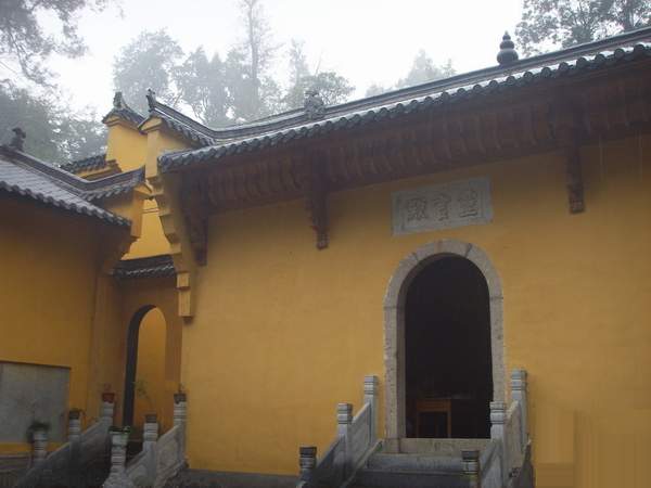 其左侧为悬空寺,乃用木柱斜插入石壁中,上面再铺板盖屋见庙,规模自然不可能宽宏。天台寺被尊为九华之首,因此,来九华山进香者多到此朝拜,也是游客游九华必到之处,所谓“不上天台,等于没来”。