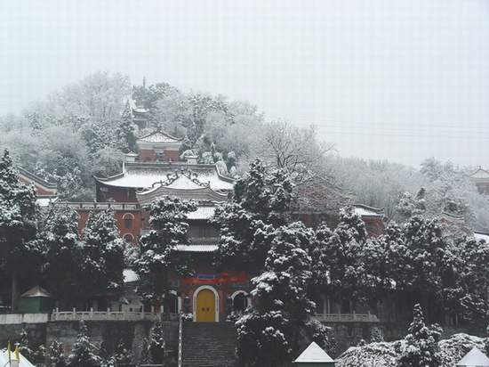 天台正顶上的天台寺(寺右平房为悬空寺)