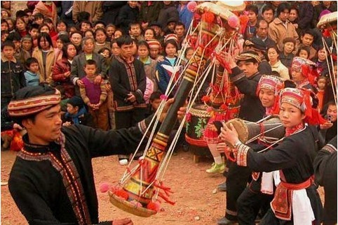 关于达努节的由来,有一个普遍流传的故事:古时候,在万山丛中有两座高大的宝山,两山对峙相望。左边那座山叫布洛西山。威武雄壮,像个武士;右边那座山,山势优美,很像一个拖着裙服豹姑娘。名叫密洛陀山。每年这两座山互相移近一点儿,经过995年,两山就要挨存一起了二这年的五月二十九日,天空突然响起惊天动地的弄雳‘两座山同时裂开一条缝,从布洛西山走出一个男人叫布洛西:从密洛陀山里走出一个女人叫密洛陀。