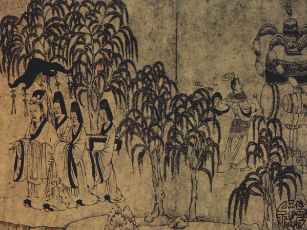 〔鉴赏〕正如当代西方学者卡尔雅斯贝尔斯提出的东西方文化与哲学发展所经历的轴心时代即从公元前800年到公元前200年,人类的精神基础同时或独立地得到奠定。东方以老子、孔子为首的诸子百家,不但拉开了中国文化与哲学从蒙昧的崇巫时代向理性的崇史时代转变的大幕,同时也是中国音乐、绘画、雕刻等艺术创造与探索大爆发的时期。(比如:近来考古发现的大批岩画、地画、壁画、漆画、帛画,其灵动多变的线条,成熟多样的技法,写实与抽象的多元探索,生动地显示了当时艺术创作的活跃状况。)中国绘画在附庸的位置上已蔚为大观。这一激情与冲动过后,是将近五百年沉潜期间创作理念由混沌到明晰、绘画原料由杂乱到集中、表现对象由神秘幻象到现实具象。到魏晋文学自觉的时候,绘画领域也出现了初步的自觉,独领风骚的人物画领域出现了一大批灿若群星的画家。南齐谢赫的《古画品录》(又称《古今画品》,简称《画品》)作为保存至今最早的一部品评著述,给我们描绘了浩渺天宇中的群星形象。虽然今天已难觅中国绘画艺术中的第一批群星划过天际留下的芳踪,我们仍可从他的记述中想见各位大师的风采。