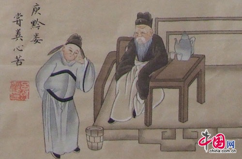 庾黔娄,南齐高士,任孱陵县令。赴任不满十天,忽觉心惊流汗,预感家中有事,当即辞官返乡。回到家中,知父亲已病重两日。医生嘱咐说:“要知道病情吉凶,只要尝一尝病人粪便的味道,味苦就好。” 黔娄于是就去尝父亲的粪便,发现味甜,内心十分忧虑,夜里跪拜北斗星,乞求以身代父去死。几天后父亲死去,黔娄安葬了父亲,并守制三年。