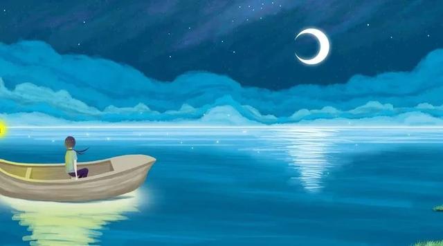 9. 月亮像一轮玉盘嵌在蓝色的夜幕中。