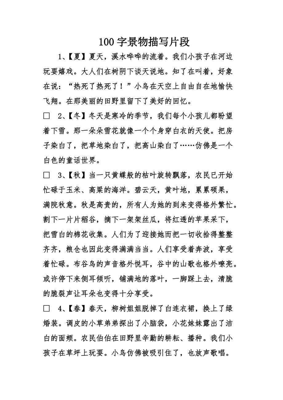 写景好段100字左右精选5句 1 路边是无限的画布,在这些可爱的橘子的点缀下,如同一副闪烁着亮晶晶的笑眼的油画,呼啦啦的往后退隐,前方的,又迫不。景色描写的优美句子 1太阳刚露脸的时候,我沿着小河往村里走,那么淡淡的清清的雾气,那么润润的湿湿的泥土气味,不住地扑在我的脸上,钻进我的鼻子。写景作文100字栏目为小学生初中生提供关于写景的作文100字作文范文大全 田野里稻谷哥哥笑弯了腰,高粱姐姐涨红了脸,田野里一片丰收景象 到底是谁让秋 清晨,推开房门。