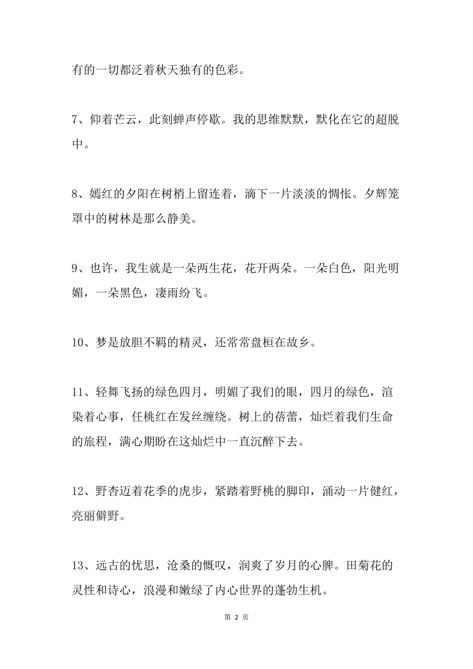优美的句子20字摘抄 1做人要地道,好人有好报做事要踏实,步履才坚实 2开拓者独。1野杏迈着花季的虎步,紧踏着野桃的脚印,涌动一片健红,亮丽僻野 2轻舞飞扬的绿色四月,明媚了我们的眼,四月的绿色,渲染着心事,任桃红在发。