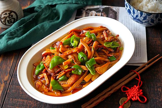 第二道菜:五花肉炒藕条家里还剩下一节藕,搭配买回来的五花肉炒一盘,是再好不过了。做法非常简单,将五花肉切片或切条,加生抽、淀粉抓匀后腌制5分钟。青椒削成滚刀块,再将藕条竖着切切成条,放入水里淘洗一遍沥干水分。热锅热油,放入肉片开大火爆炒2分钟,再倒入藕条、青椒、盐、少许醋继续炒2分钟,即可关火装盘。