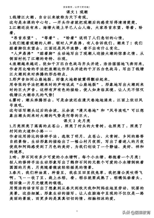 1.月亮照亮了高高的点苍山,照亮了村头的大青树,也照亮了,照亮了村间的大道和小路……