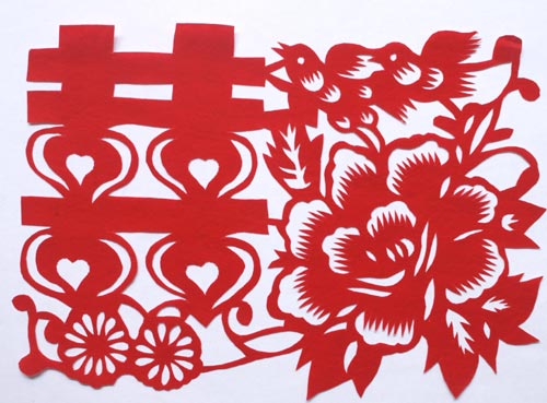 富贵双喜 剪纸作者:黑龙江哈尔滨林玉卿