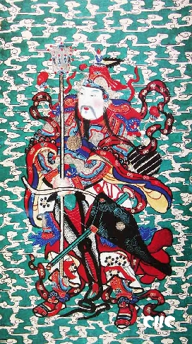 我国各地过年都有贴门神的风俗。最初的门神是刻桃木为人形,挂在人的旁边,后来是画成门神人像张贴于门。传说中的神荼、郁垒兄弟二人专门管鬼,有他们守住门户,大小恶鬼不敢入门为害。唐代以后,又有画猛将秦琼、尉迟敬德二人像为门神的,还有画关羽、张飞像为门神的。门神像左右户各一张,后代常把一对门神画成一文一武。门神分三类:第一类是“大门门神”,多贴在车门或整间大门上,高约四五尺,宽约二三尺。第二类是“街门门神”,多贴小街门上,高约二尺,宽约一尺。这两种门神都是一黑脸一白脸两位尊神。白左黑右,白善易,黑狞恶,各手执槊钺。第三类是“屋门门神”,较街门门神稍小有限,也是黑白二神,但也有黑白二神是坐像的。屋门最多是贴“麒麟送子”像,两个傅粉涂脂梳太子冠的娃娃,各乘麒麟。这种门神,本应贴在新结婚的屋门上,以取吉利,后来也就作普通街门的新年点缀品了。