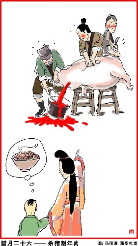 2月2日是农历腊月二十六。俗话说“腊月二十六,杀猪割年肉”,说的是这一天主要筹备过年的肉食。杀猪,当然是杀自家养的猪;割肉,是指没养猪的人家到集市上去买过年吃的肉。