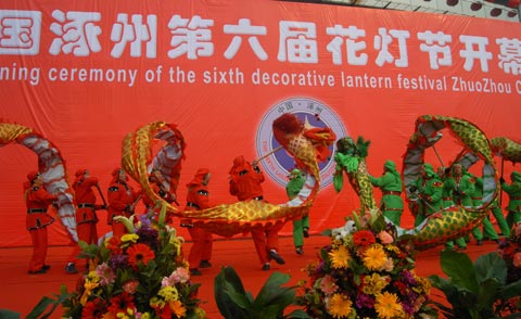 第六届涿州花灯节,舞龙灯表演 (韩琳 摄)舞龙灯: