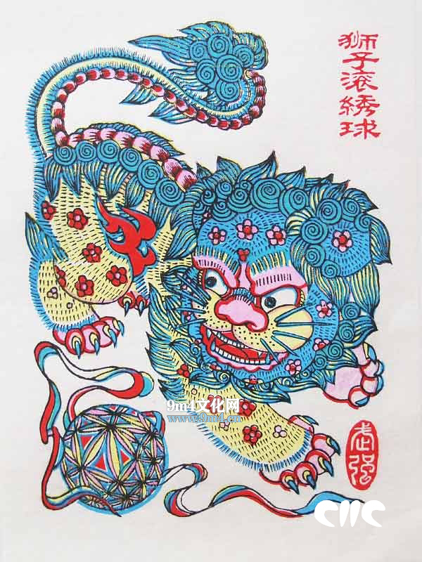 狮子滚绣球(武强年画博物馆藏)