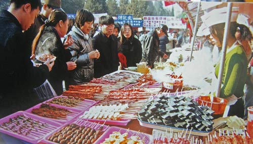 ? 庙会上有众多南方北方的小吃。