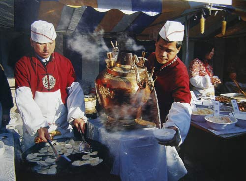 现如今,庙会上也有外国食品和小吃提供了。