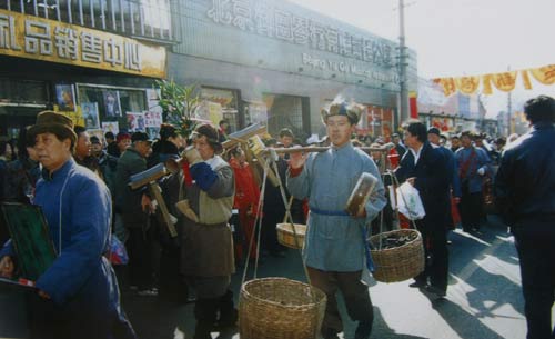 大约一个世纪以前,一本介绍北京概况的书中曾这样描写厂甸庙会:“整个庙会场地挤满了漂亮的女士、马匹和农用小车。”一个世纪后的今天,北京庙会似乎仍是这幅景象。(图片来源:外文出版社《中国庙会》)