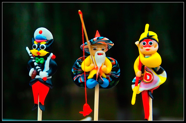 面人也称面塑,是一种制作简单但艺术性很高的民间工艺品。它用面粉、糯米粉为主要原料,再加上色彩,石蜡、蜂蜜等成分,经过防裂防霉的处理,制成柔软的各色面团。