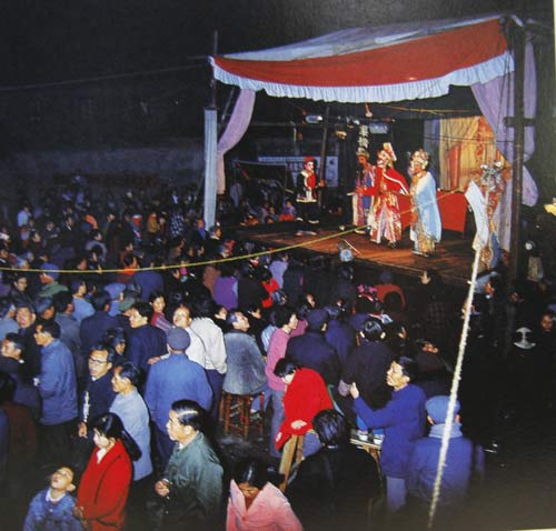 在边远山区的庙会上,人们会在庙门口搭台表演当地民俗戏曲长达数天之久。这既是祭拜众神,也是当地居民的一种娱乐活动。(图片来源:外文出版社《中国庙会》)