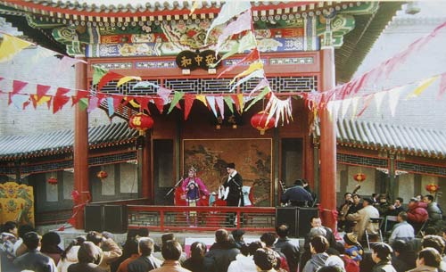 ? 庙会期间,人们会搭起临时的戏台表演京剧,以表达对众神的感激之情。