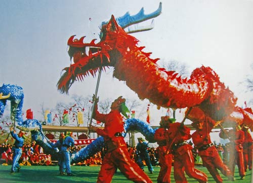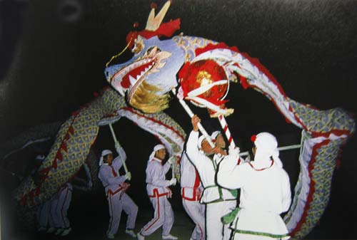 夜幕降临的时候,“龙”内部的蜡烛就会被点着,使它变成一条“火龙”。