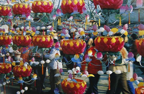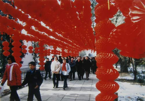 ? 庙会期间,灯笼在地坛公园里随处可见。